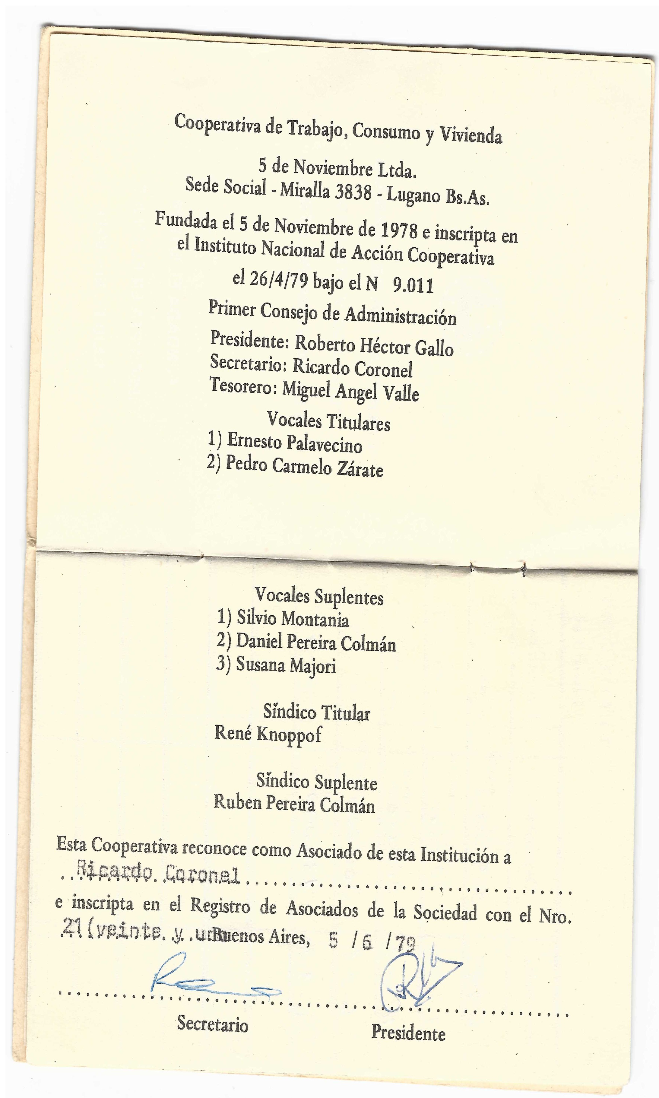Carnet de la Cooperativa 5 de Noviembre